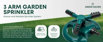 Presentamos el paquete de 2 aspersores de césped de 3 brazos de alta resistencia, diseñados para quienes desean soluciones de riego confiables y eficientes para sus céspedes y jardines. Este aspersor cuenta con una rotación completa de 360 grados, lo que garantiza una amplia cobertura de área para mantener sus espacios al aire libre exuberantes y vibrantes. Cada unidad incluye dos tipos de conectores de manguera para una fácil instalación y versatilidad. Los usuarios elogian su c